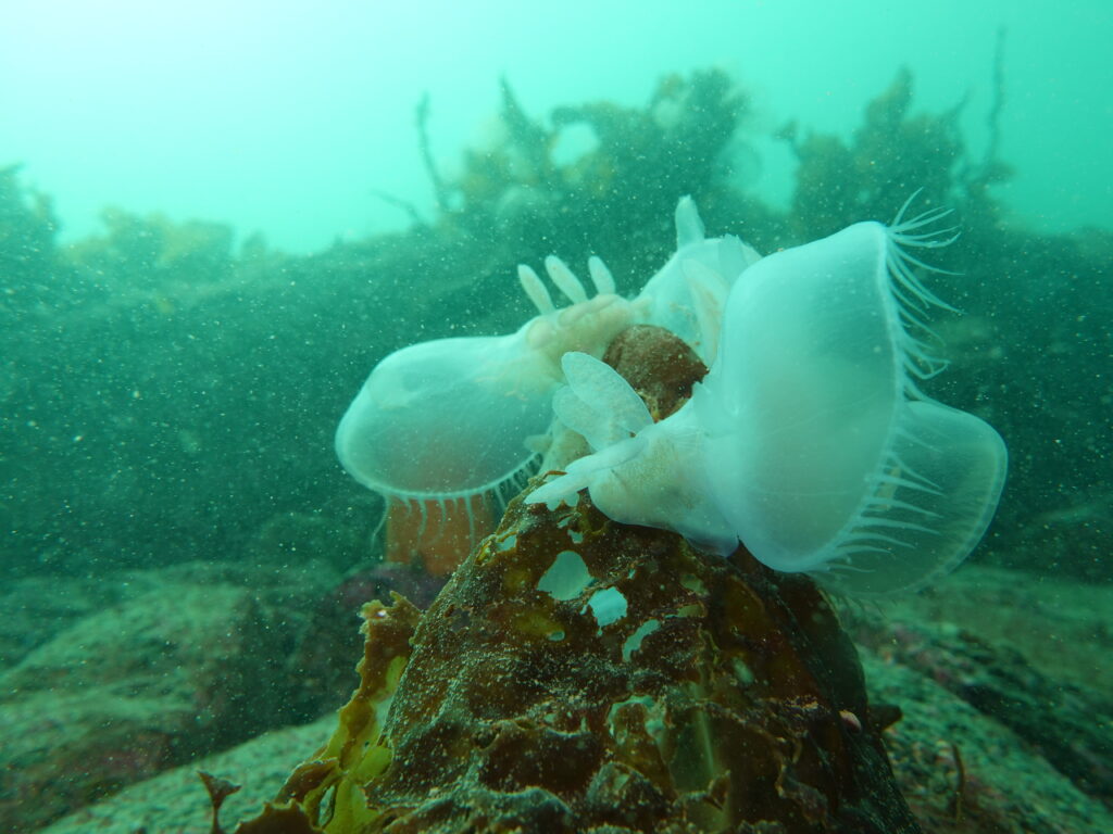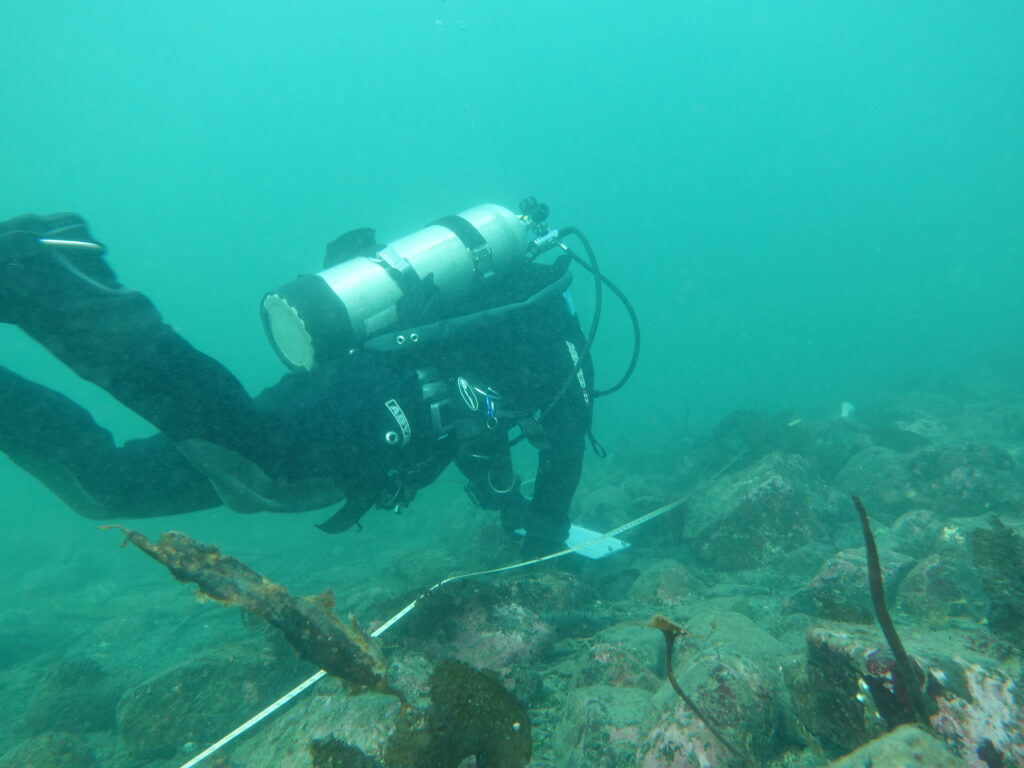 The stimulus for organizing diving training and for Guardians to become certified arose from kelp research that has been conducted by some of the Nanwakolas member First Nations since 2018. Kelp, which grows almost everywhere in the marine environment in the Nations’ territories, is a vital indicator species of marine habitat health, and supports many other ecologically, culturally and economically important species.