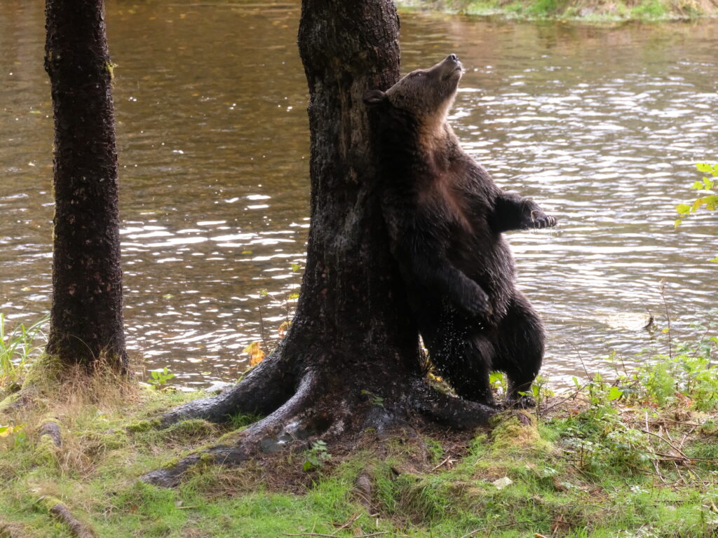 Not least of all, says Melanie, some of these trees have evidence that they’ve been used potentially for hundreds of years: “Bears understand where these trees are within their home range. They visit these trees when they come back into an area. If we see a male bear on camera, for example, he will come and he’ll move from rub tree to rub tree to rub tree, and then potentially, he’ll find a female to breed with. We think that bears retain the knowledge of where they are over time, so they’re an important habitat feature to protect.”